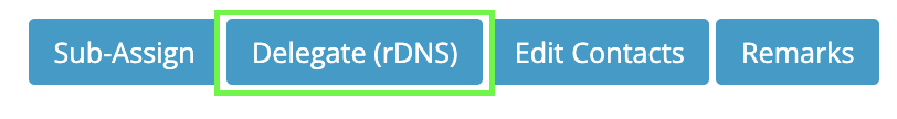 - [Delegate]: This action begins the process of reverse DNS delegation for the selected IP address block.