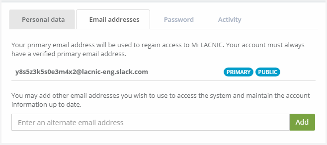 Mi LACNIC can be used with multiple email addresses associated with the same user account.
