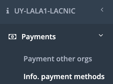 From the context menu, the [Payments] > [Info. payment methods] option allows you to access information about the payment methods accepted on Mi LACNIC.