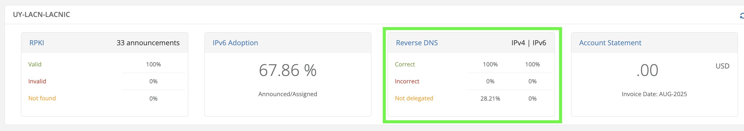 rDNS status (Initial Dashboard)