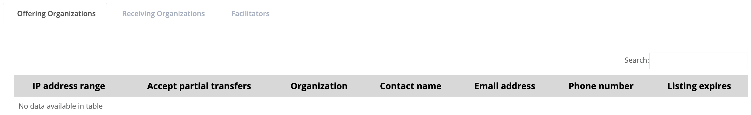Note: this list will only be accessible by users who represent organizations that are participating in the transfer process.