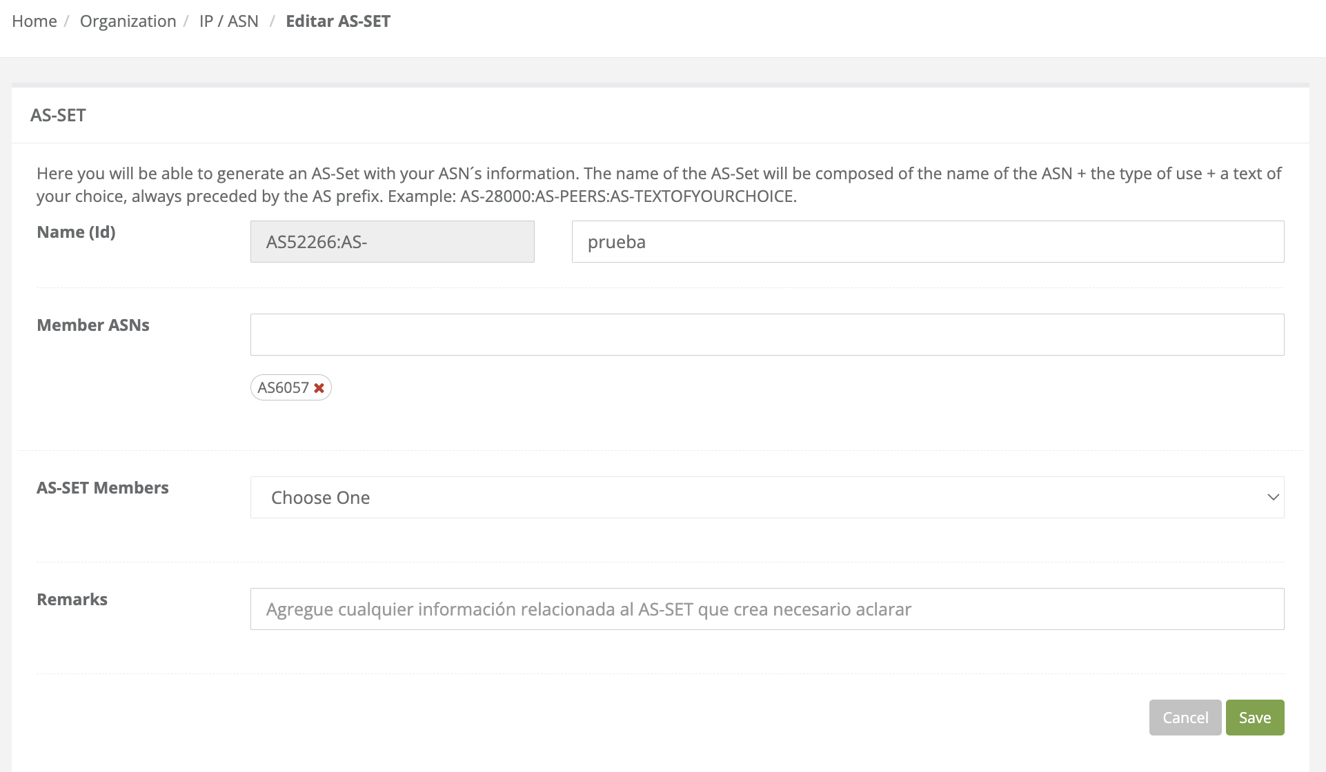 Then, select the [Edit] button for the as-set object you wish to modify: