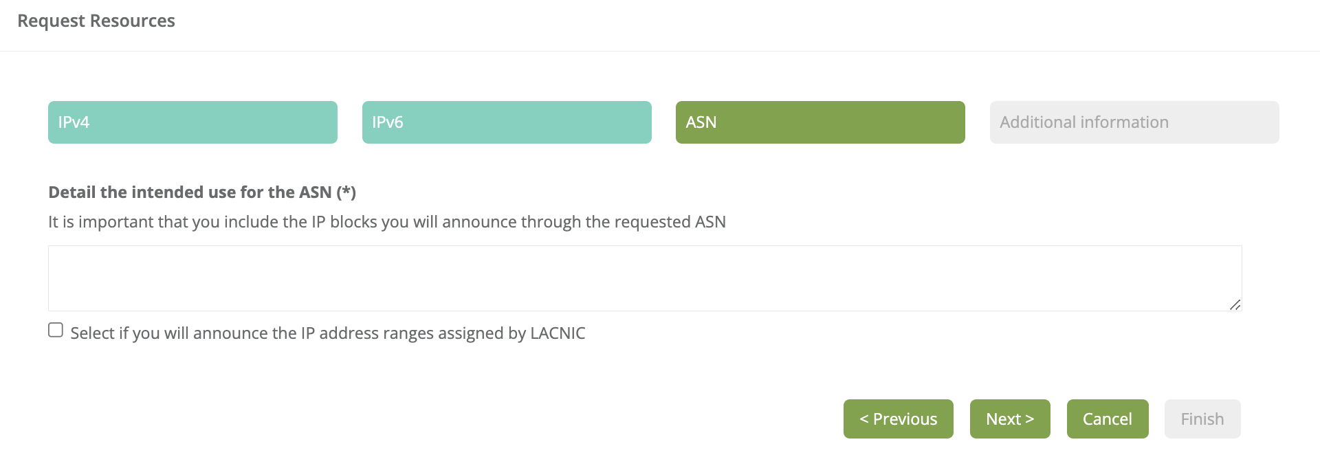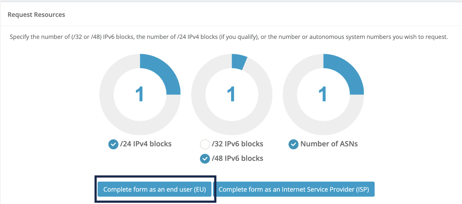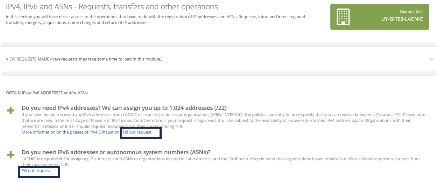 Click [Request IP/ASN] to access IPv4, IPv6, and ASNs - Requests, transfers, and other operations.