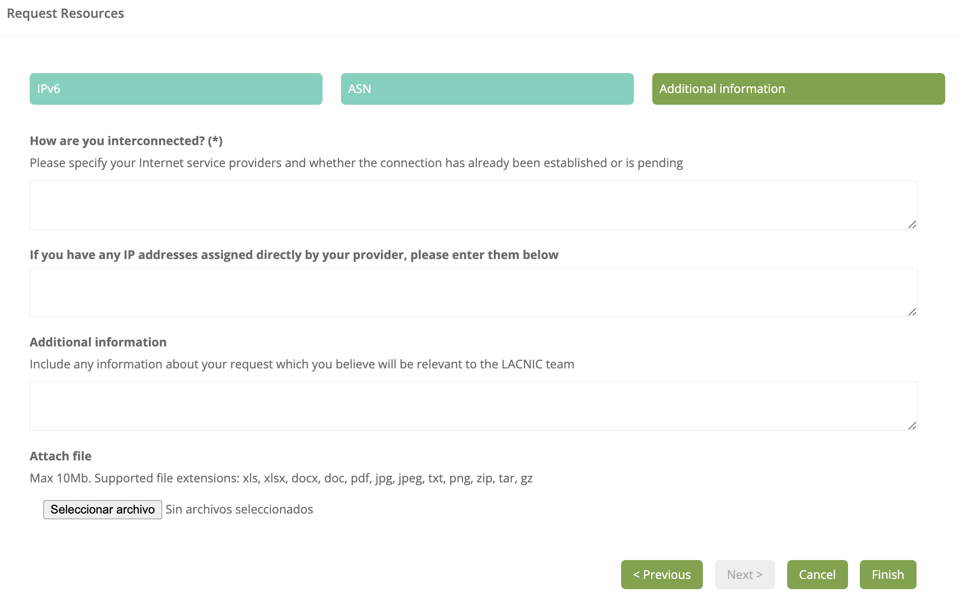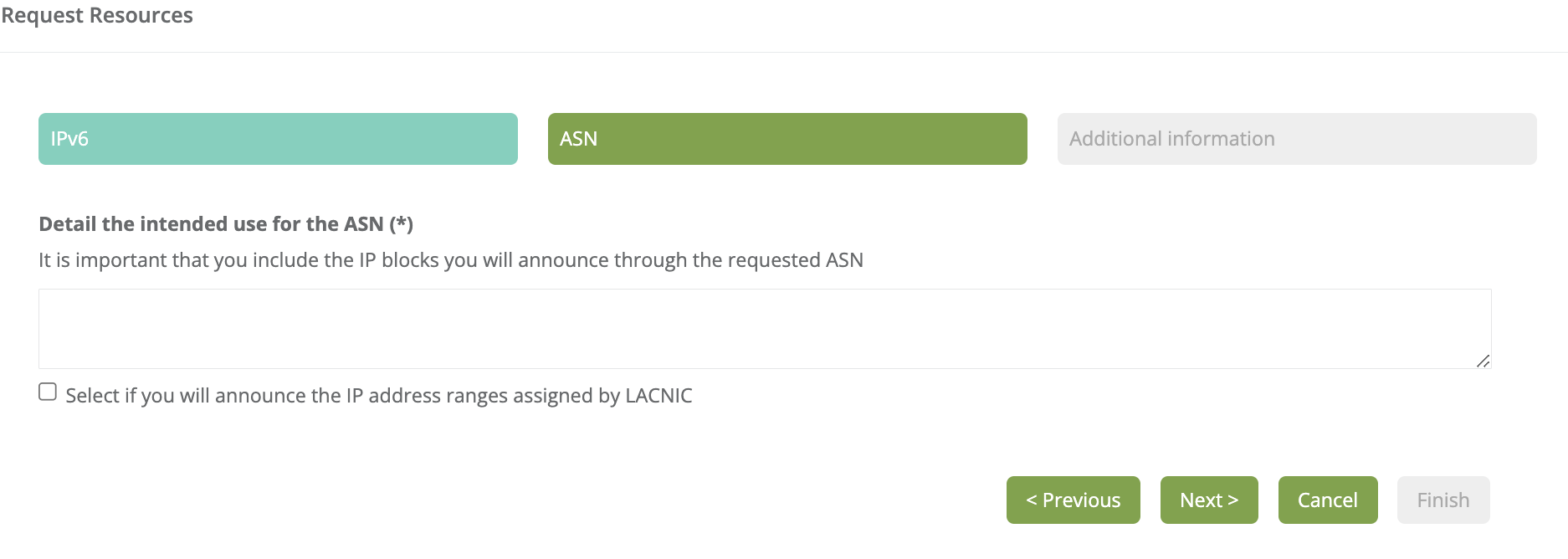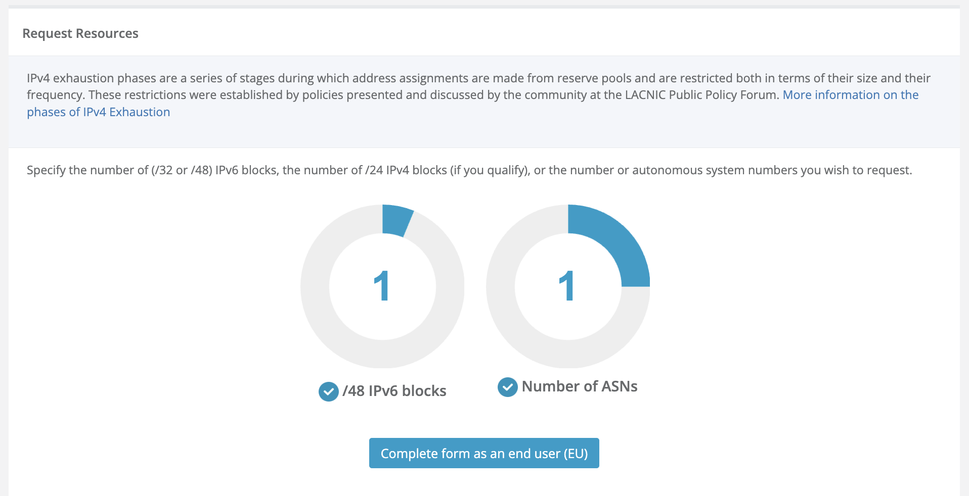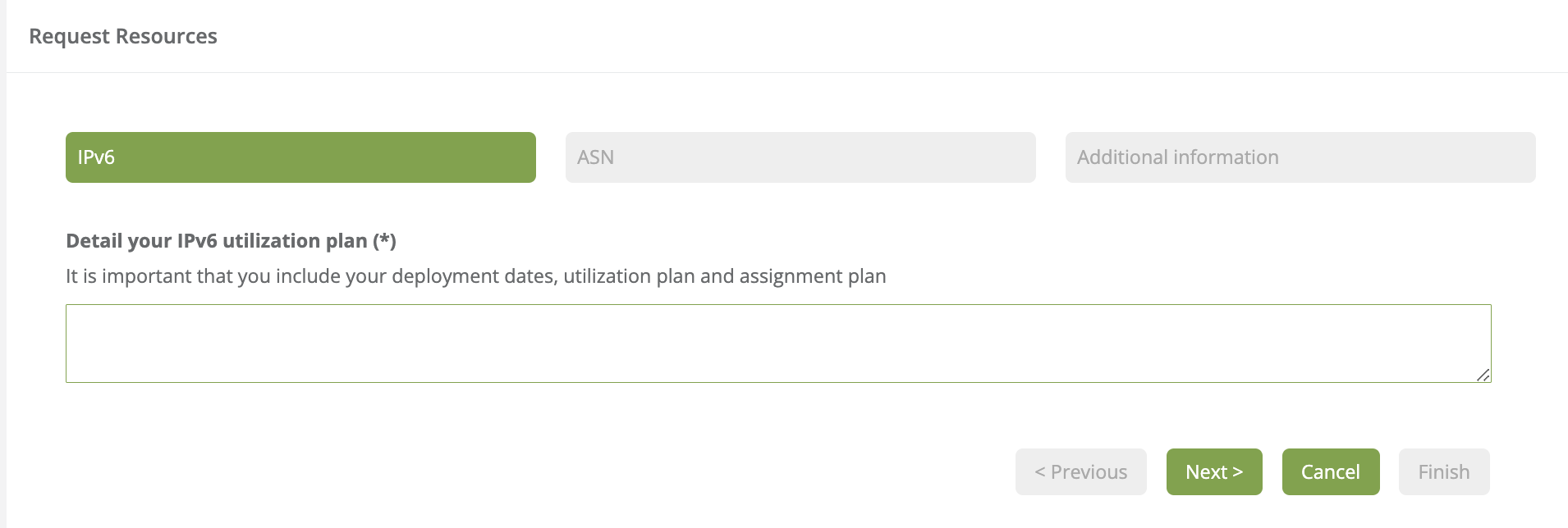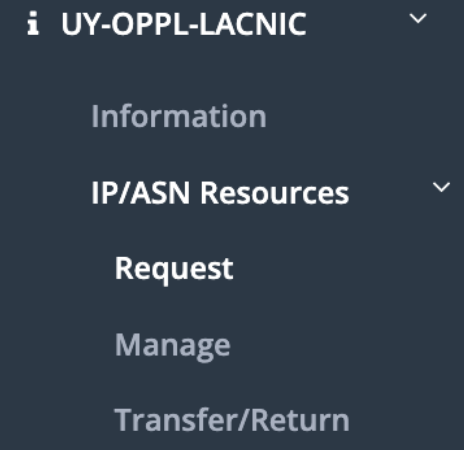 The [IP/ASN Resources] / [Request] option in the context menu allows you to access the section on Obtaining IPv4, IPv6, and/or ASNs.