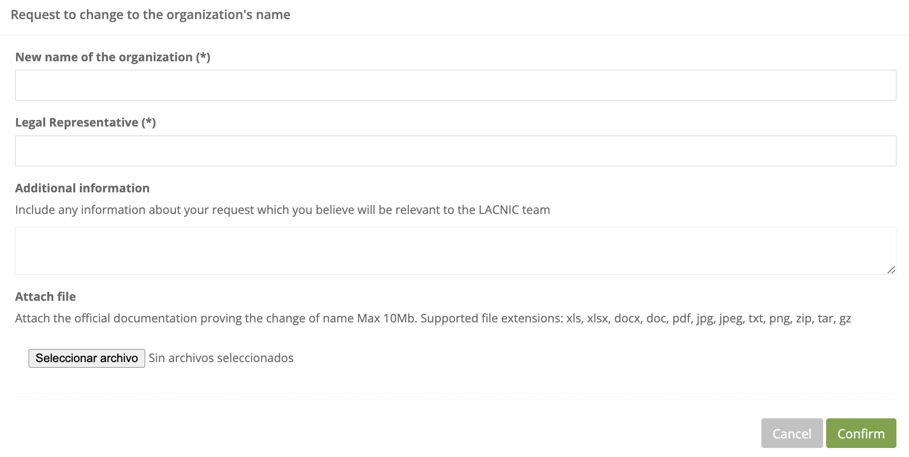 Once you've finished entering the information required for your name change request, click [Confirm].