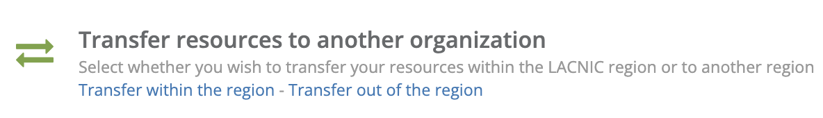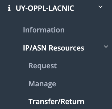The [IP/ASN Resources] / [Transfer/Return] option in the context menu will allow you to access the section TRANSFERRING IPv4, IPv6 and/or ASN - TRANSFER LISTS.