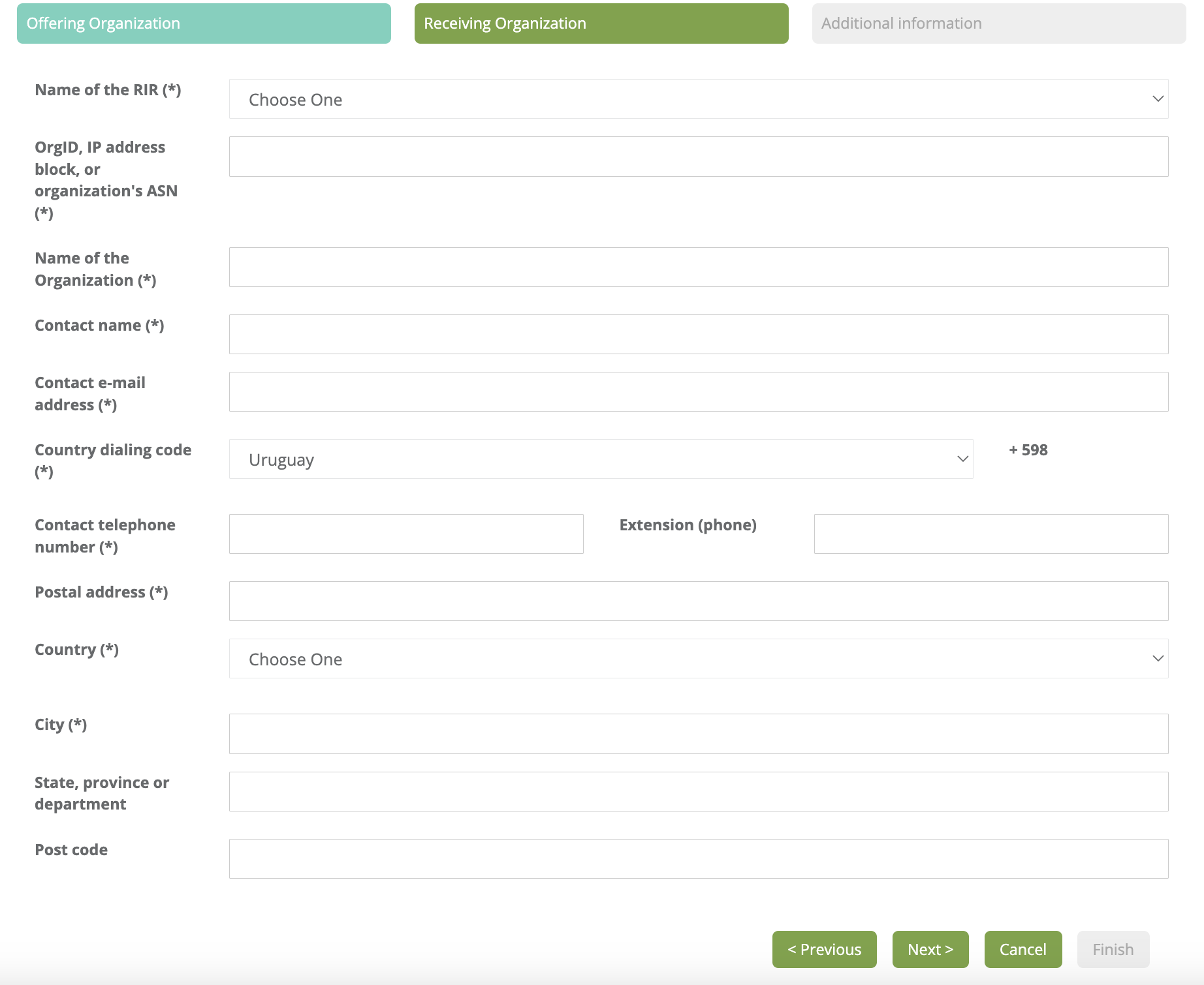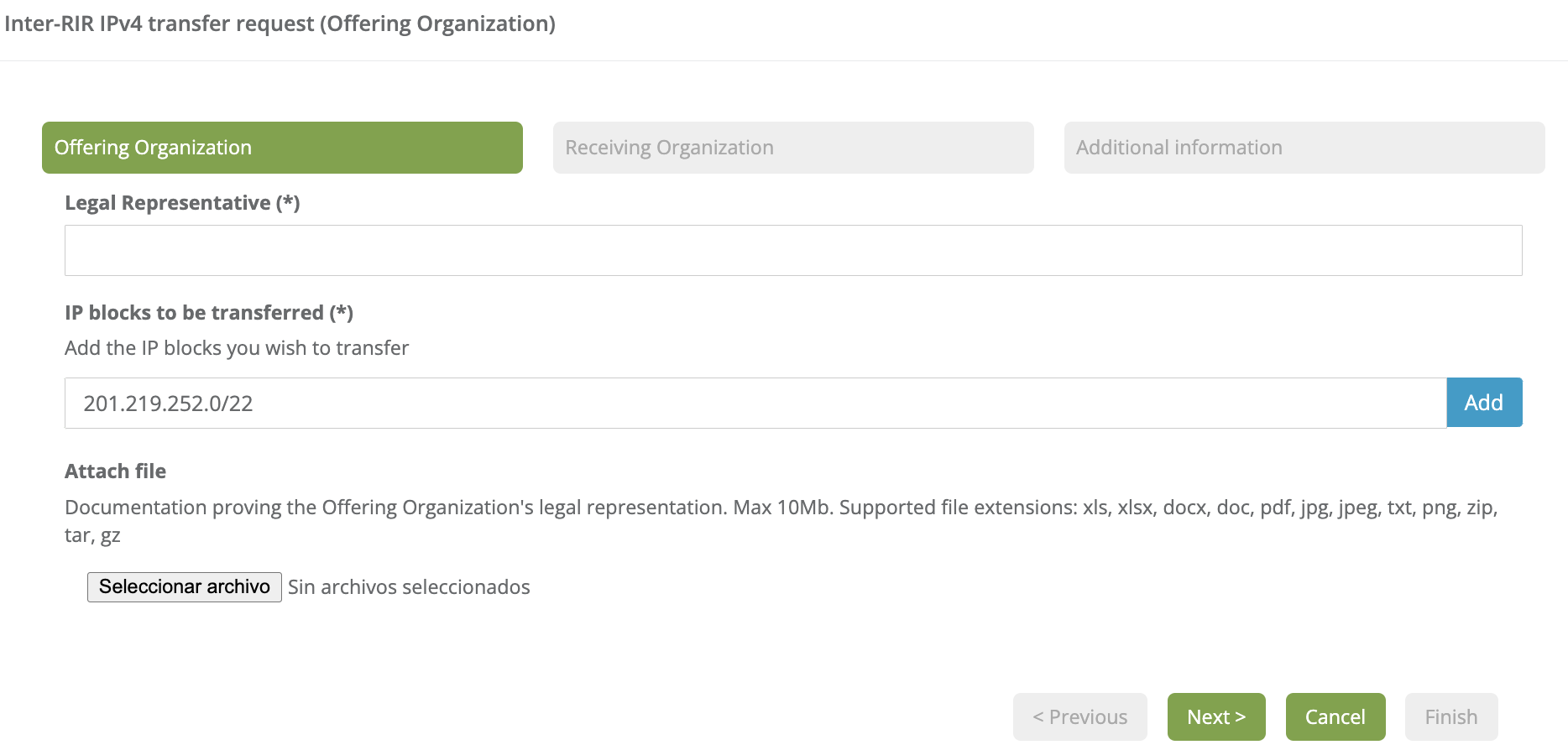 Once you've finished entering the information for your inter-RIR transfer request, click [Finish].