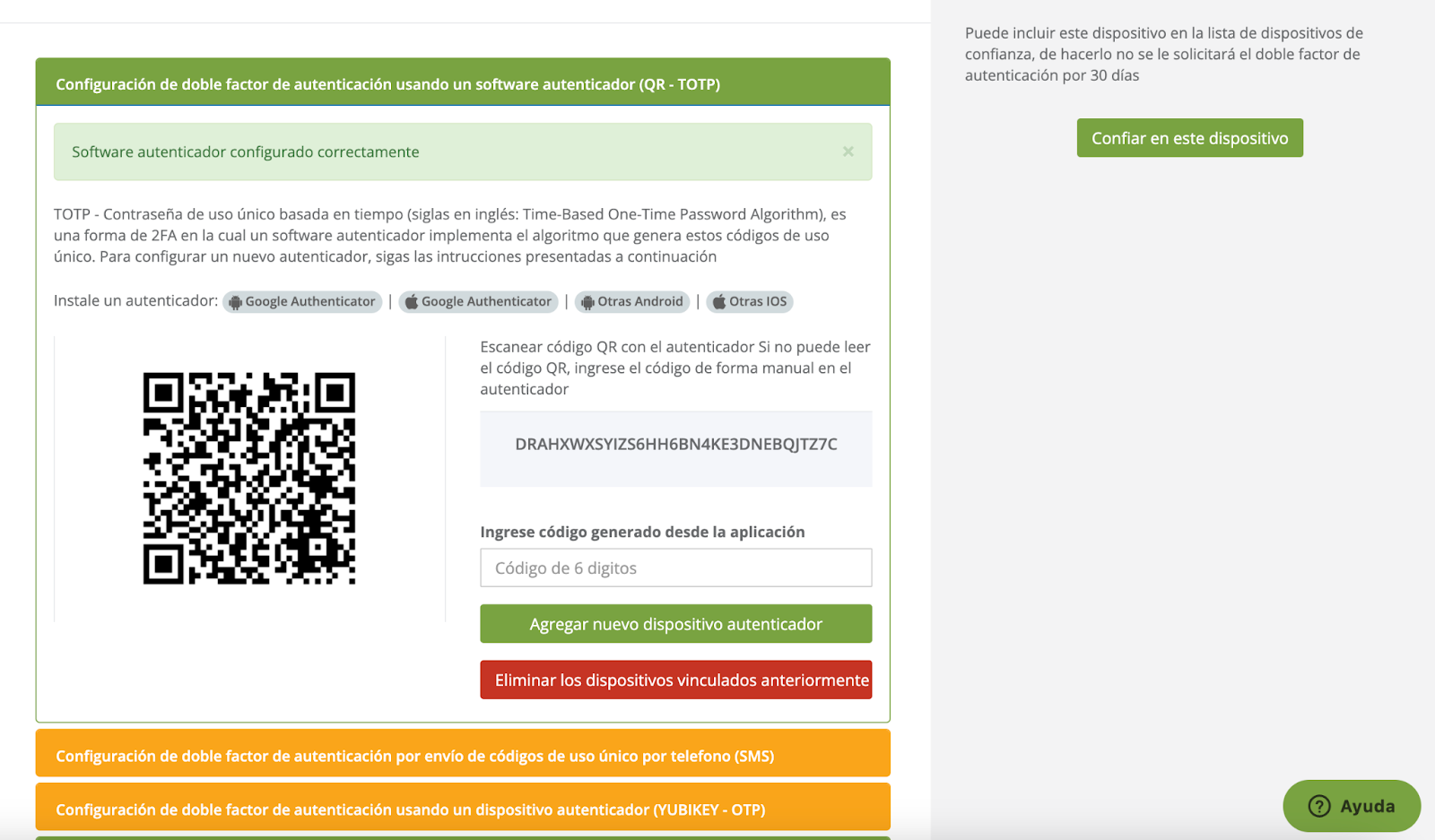 1.1) Configuración con Software Autenticador (QR-TOTP)