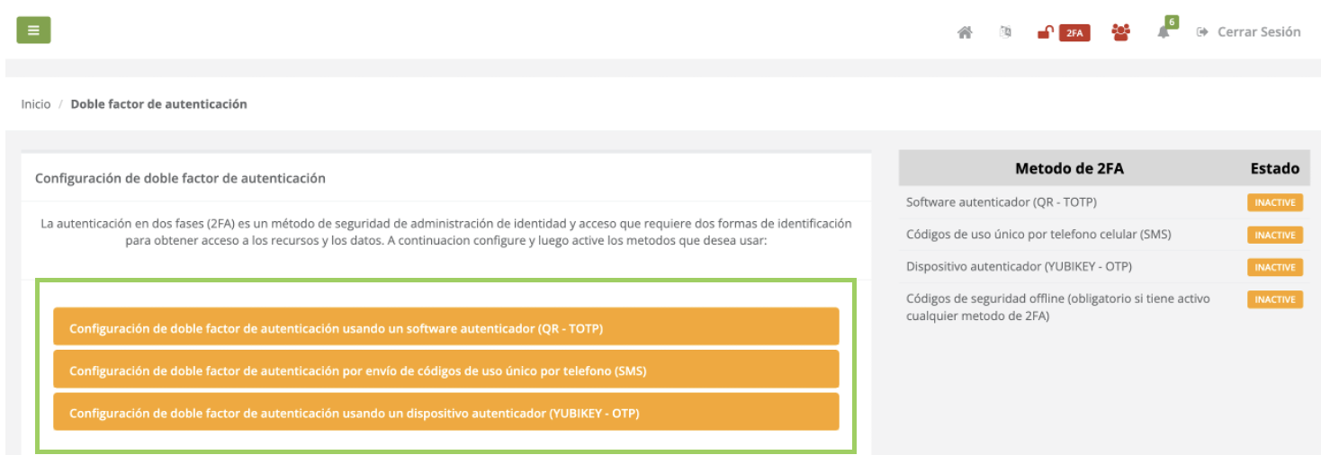 A continuación se mostrarán cada uno de los 3 métodos para configurar el 2FA y la verificación de la configuración: