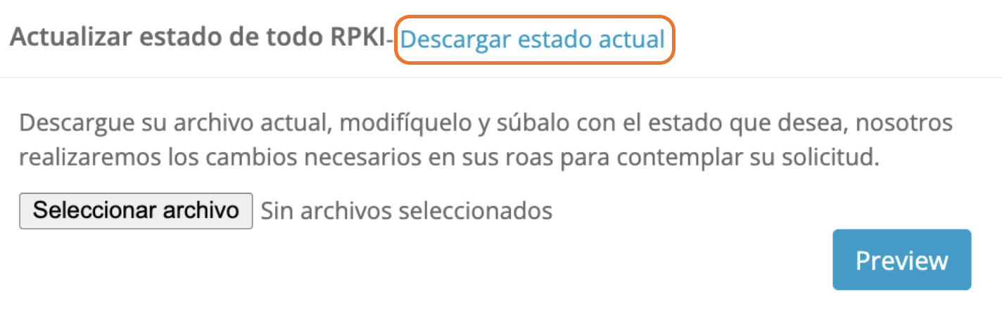 1) Al utilizar la opción [Descargar estado actual], le permite descargar el estado actual de todos los ROAs registrados para su organización: