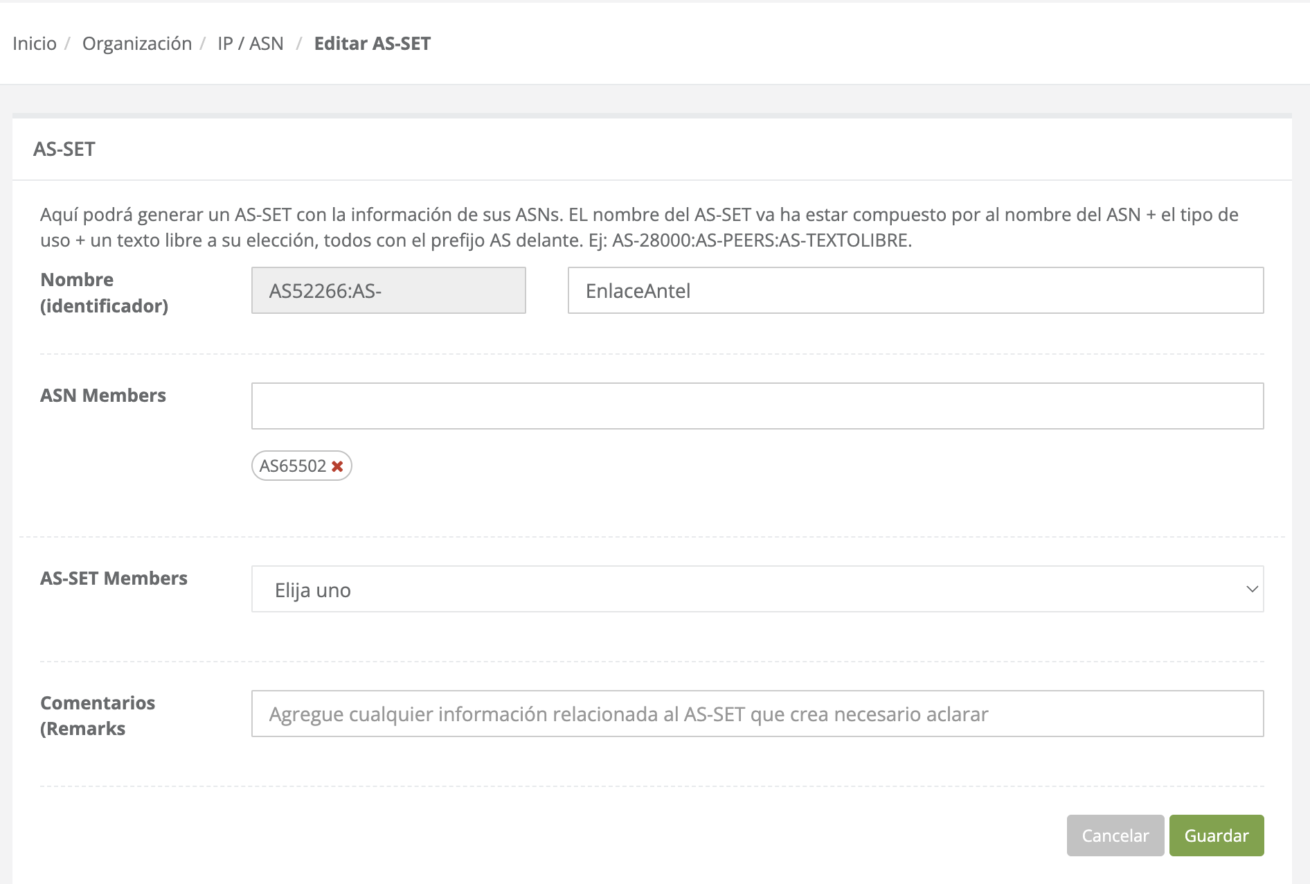 - Modificar AS-SET