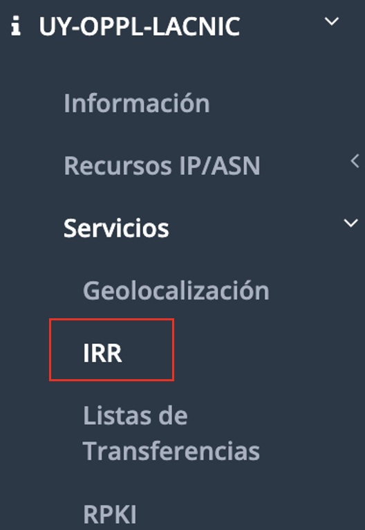 Desde el menú contextual de la organización en la opción [Servicios/ IRR]: