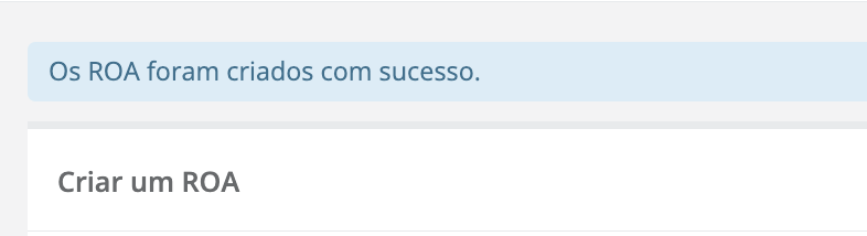 - Após a confirmação das alterações, uma notificação pop-up aparecerá indicando “Os ROAs foram criados com sucesso”. Evidência de que as alterações foram feitas e que você também poderá visualizá-las no menu de contexto “Lista de ROAs administrados pela minha organização” localizado à direita da interface do RPKI.