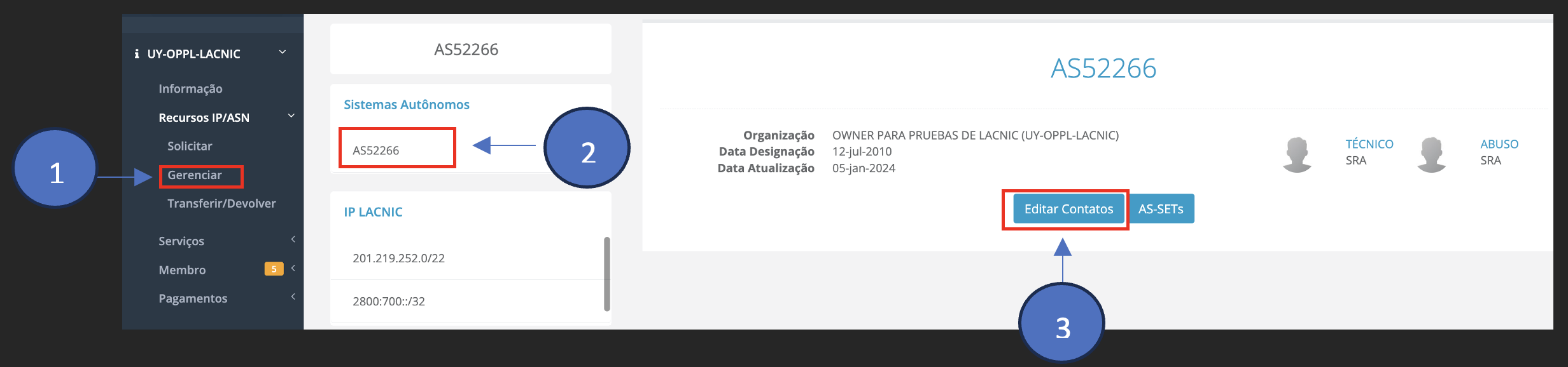 *Requisito: O contato deve estar cadastrado e com sua conta ativa em MI LACNIC.