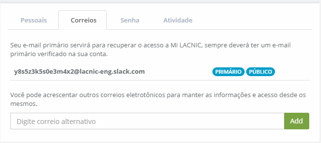 Para adicionar novos correios somente tem que preencher o campo "Digite correio alternativo" e clicar no botão [Add]