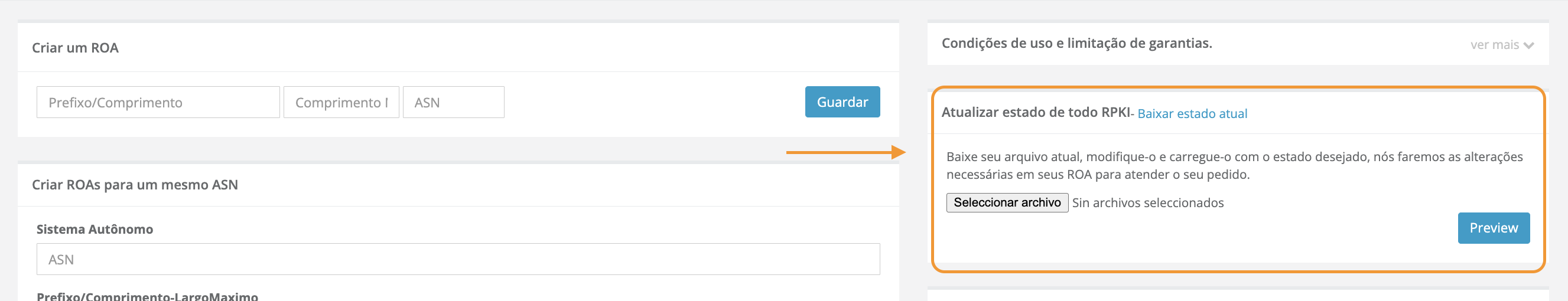 Este modelo de criação de ROAs nos permite usar um arquivo .csv para criar, modificar ou eliminar ROAs em uma única operação em massa: