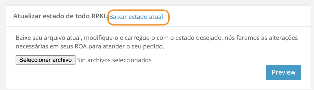 1) Usar a opção [Baixar estado atual] permite baixar o estado atual de todos os ROAs registrados para sua organização: