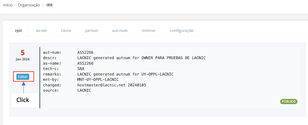 Editar aut-num desde o IRR