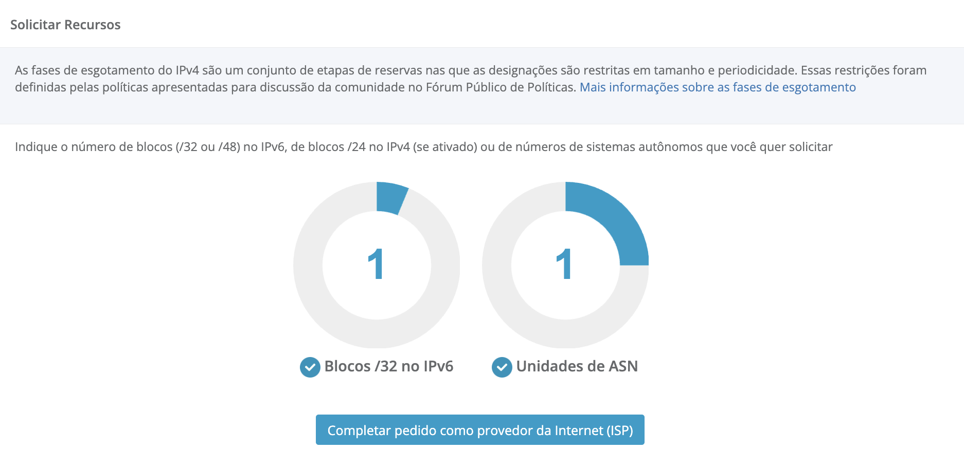 Para continuar clique no botão: [Completar solicitação como provedor da Internet (ISP)]