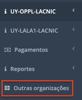 Se você ainda não é associado, selecione no menu de contexto a opção [Outras Organizações], que exibirá um menu mostrando todas as organizações gerenciadas pelo usuário com o qual você está logado.