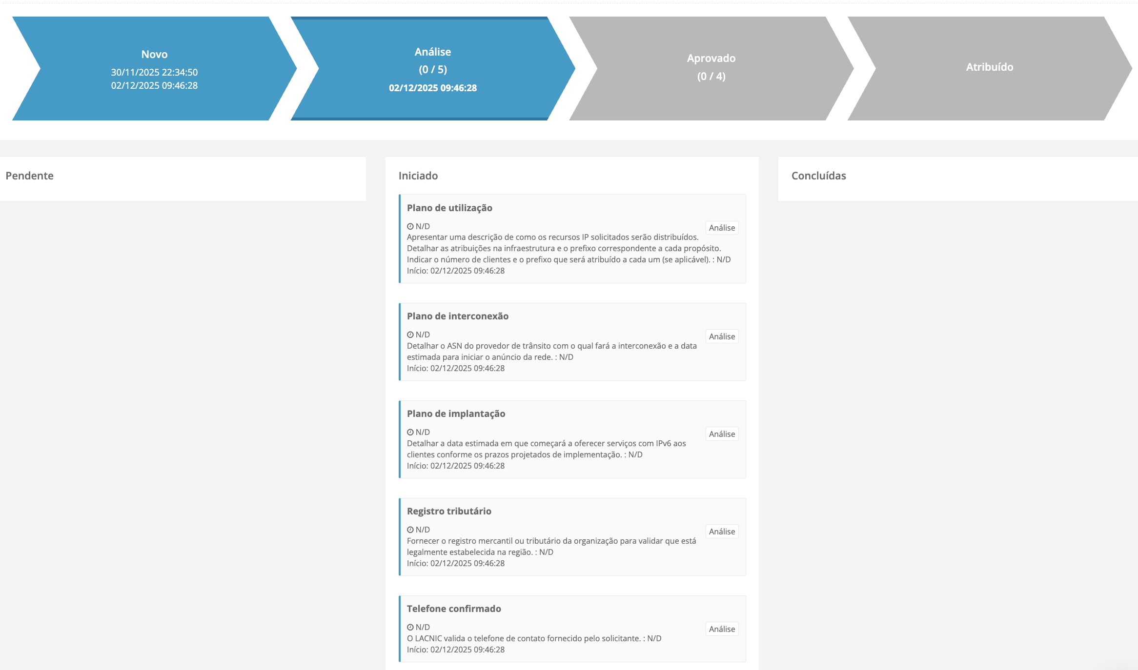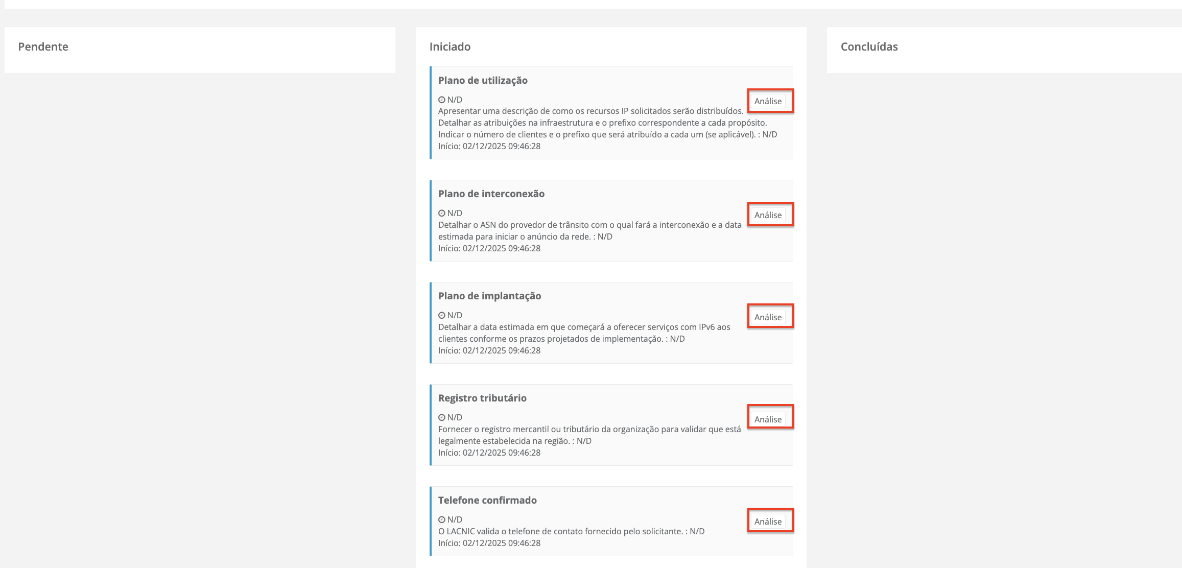 - Se o estado for “Pendente de Análise” é que se está aguardando uma resposta do LACNIC.